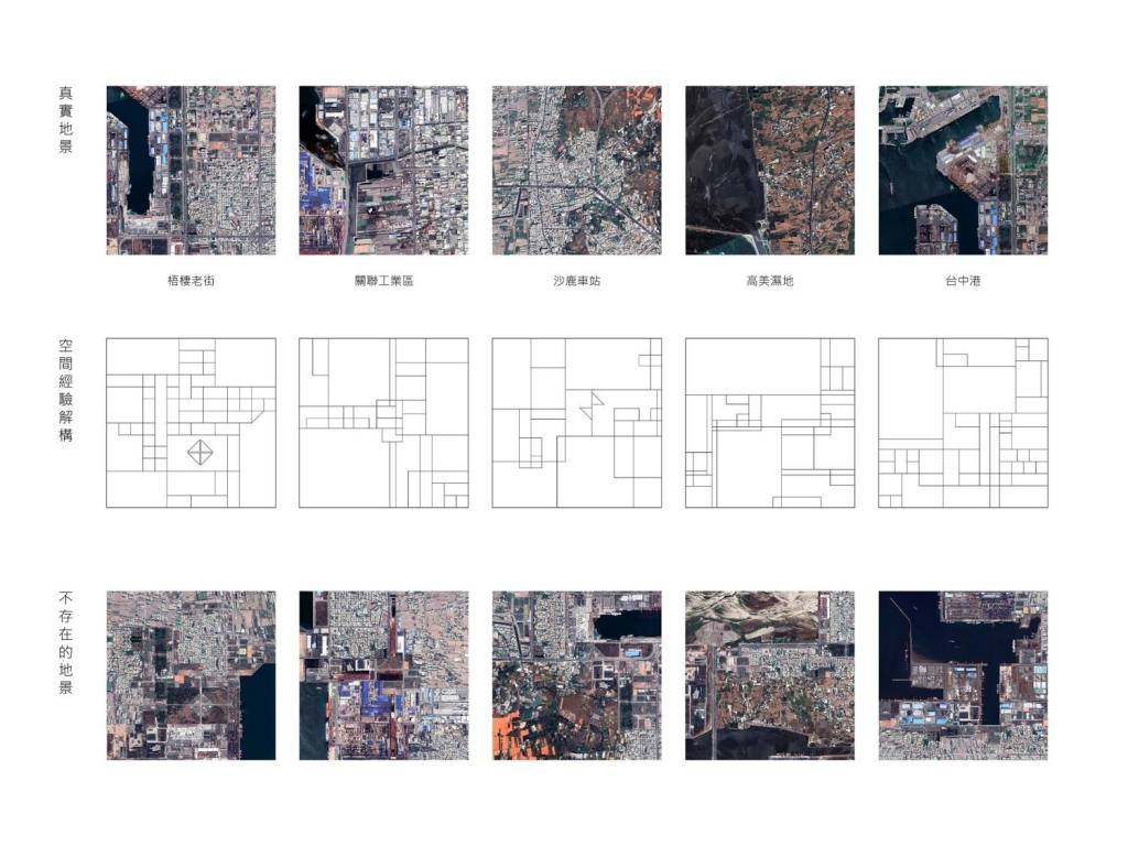 海線平原上的梧棲,聚落分散而街廓重複蔓延,難以描述整體樣貌,更為港區、大道、高架橋等切割,出現許多平地拔起的巨大建物,與無法穿越流通的障礙。洪挺凱的作品,首先推導了街廓複製蔓延的規律,生成各種不存在的海線空間,再製作了戰爭迷霧下的地景迷宮,從不斷碰壁與回頭之中摸索出所在空間的相對位置關係,也呼應了我們在梧棲的開車與步行經驗。