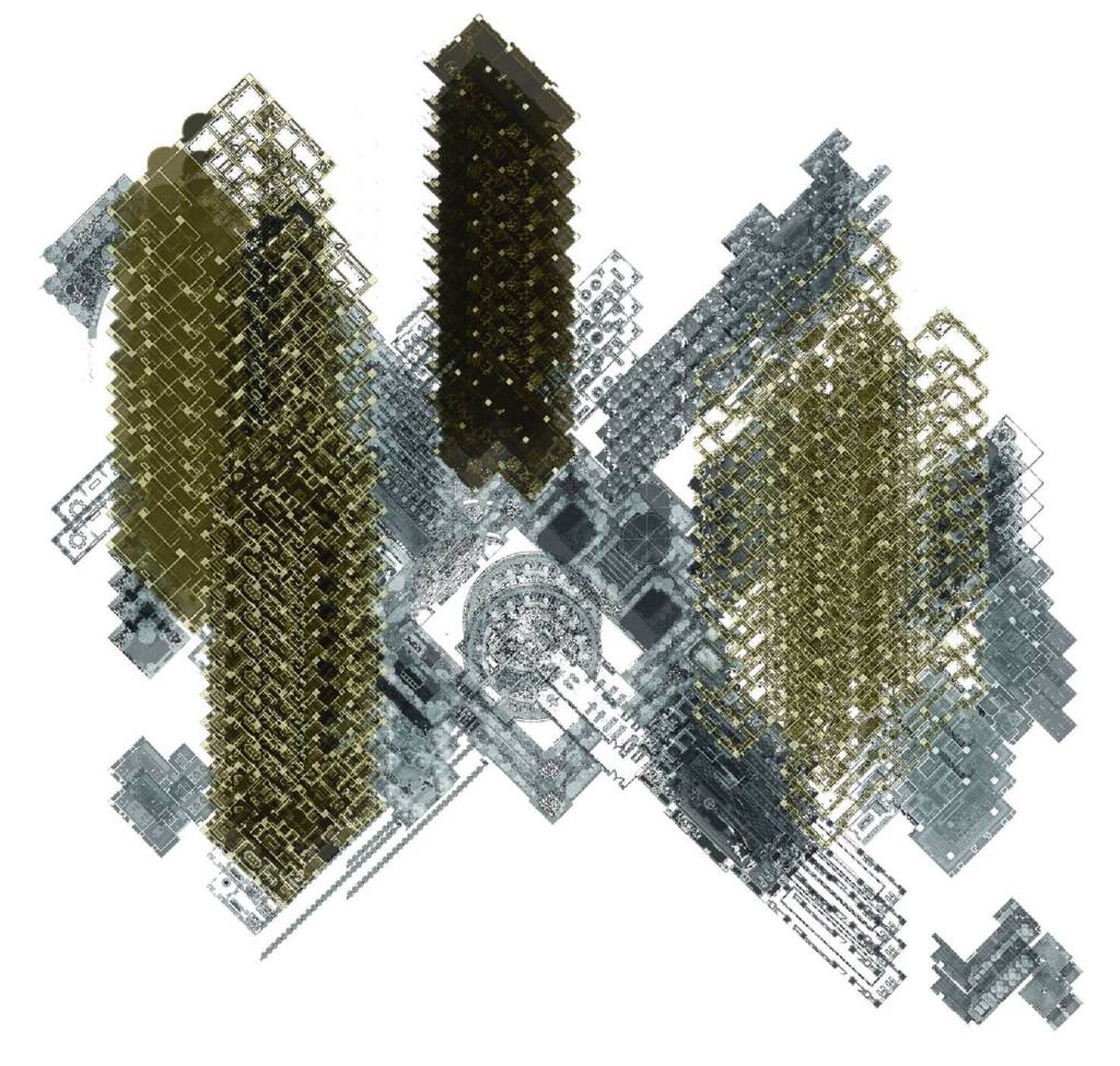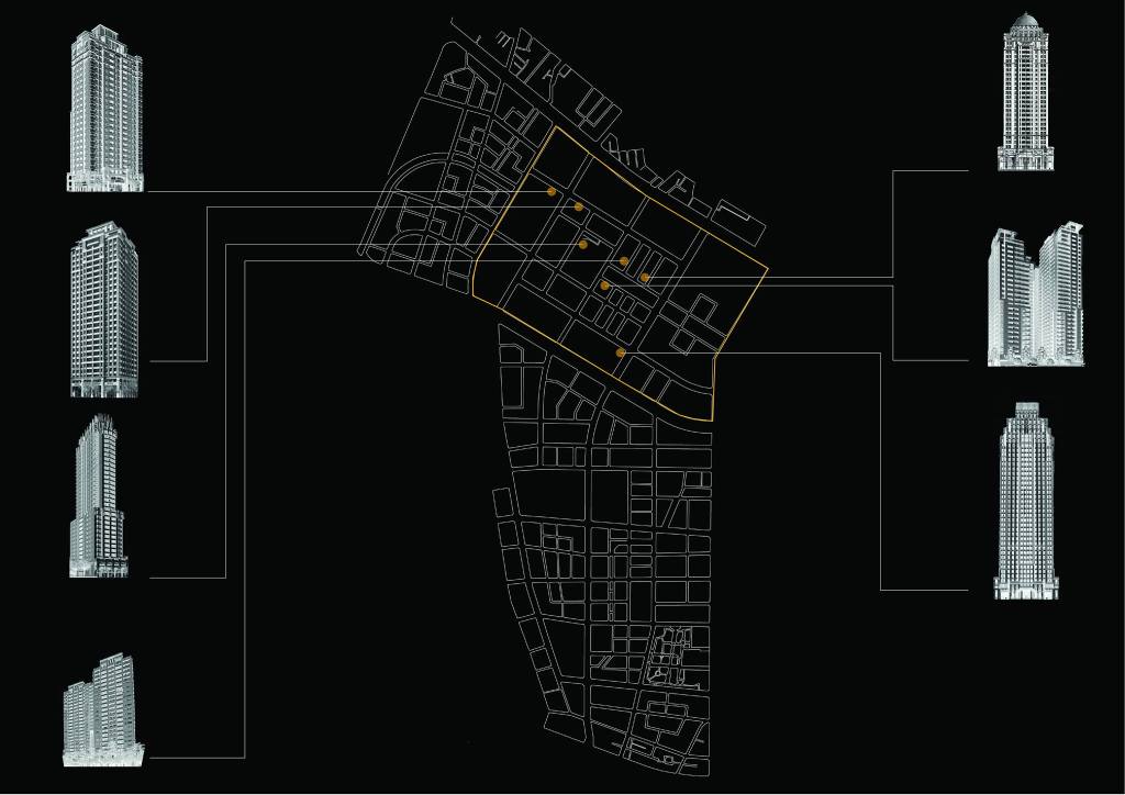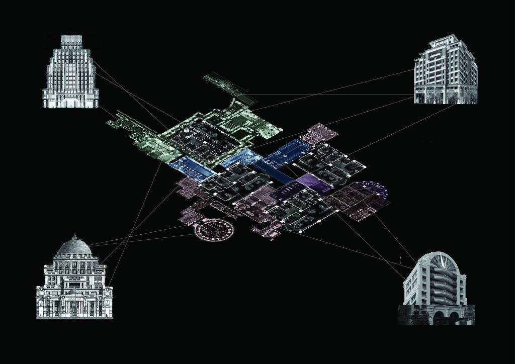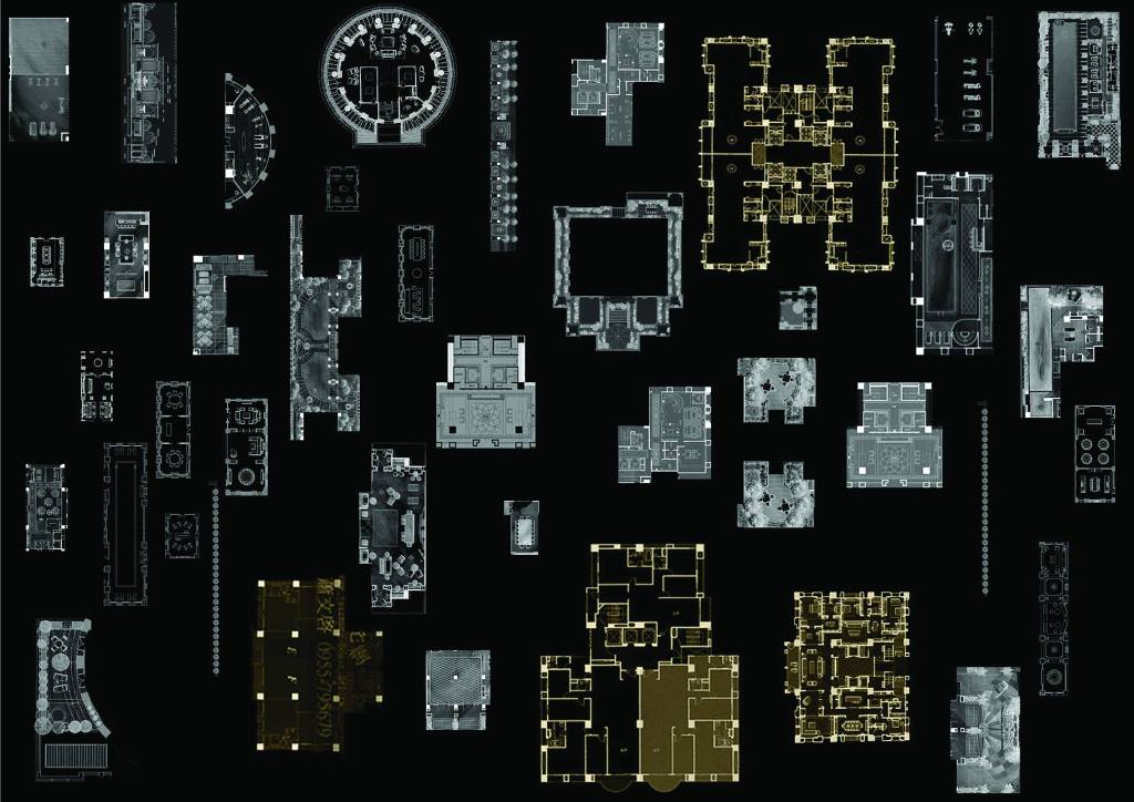 能不能將無人使用的豪宅公設,真正開放給市民使用?提案勾勒出一種平行的現實,將幾棟豪宅大廈去頭截尾,集結所有頂樓與底層的公設平面,拼貼安排為地面層上眾人可以遊逛使用的機能與空間,招喚回公共設施的公共意義。