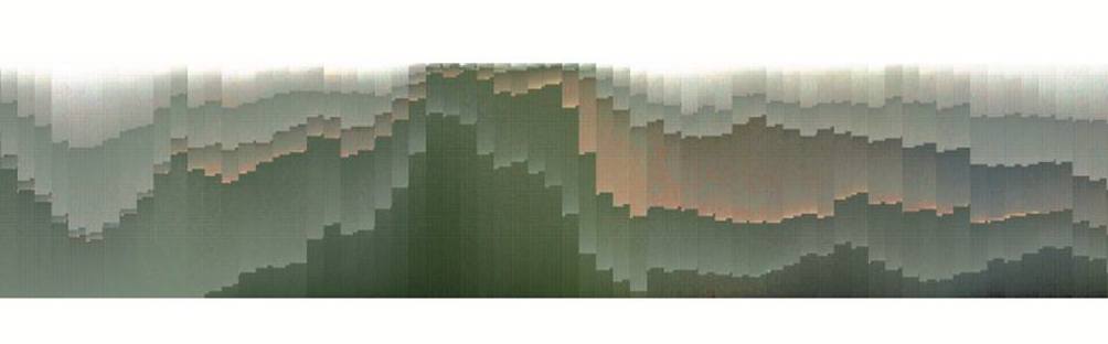 這份作品並未更動原始照片的視覺元素,僅是重新賦予排列的規則,便將台灣大道的線性地景轉化成橫幅捲軸的渲染畫作。命名為「析色山水」,不只在於其視覺表現讓人聯想到傳統水墨,更是作品所帶來對於山、水等自然地景如何相融於人為環境的想像啟發。