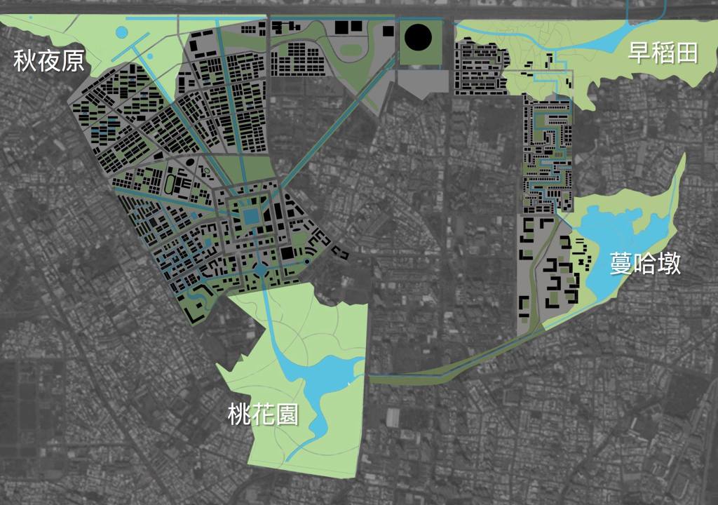 「超級自然」規劃提案,參考台中七期與其他近代規劃案例,將重劃區分為中心商業區、高密度住宅區、低密度住宅區三大部分,並促狹地挪用房產市場的空間語彙,概念上符合一般對於新興重劃區的開發想像,但操作方法上特別從公園與水道兩部分切入,討論都市中各種綠、藍元素之公共性層級,讓公共空間的正面外部效應能夠廣泛溢出,以追求公共空間的實質平等。