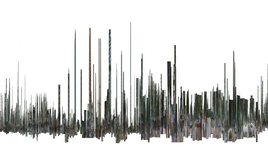 當代移動速度的提升,帶來地景空間感的壓縮。我們越發習慣於快速道路、高鐵,乃至於飛行的速度經驗,習於看到窗外景觀迅速向後流逝;快速抵達目的地,彷彿距離不再遙遠。一條當代高速經驗之下的台灣大道,會留下如何的視覺印象?作品擷取了從台中火車站一路延伸到中港交流道的沿路雙邊街景,壓縮進一米五的寬度之中。街道面建築的高低接替,成為連續波形的波峰波谷;台灣大道成為一首音樂的演繹高潮,或是一次心跳的脈動記錄,捕捉了城市生活的積極動態。