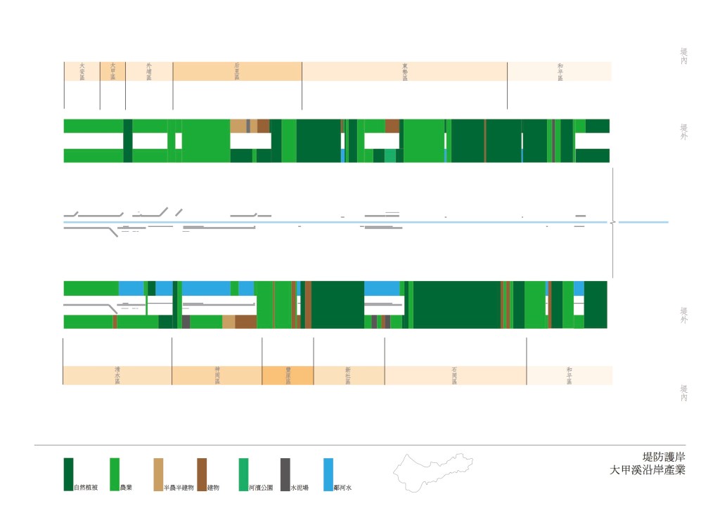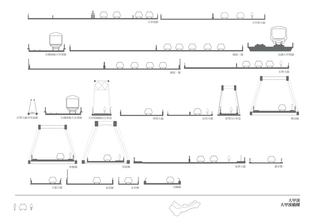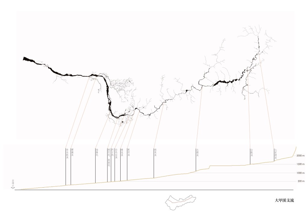 以河川、海岸、溪流三組研究觀點,三百張圖面,以及 1/10000 大台中地圖,呈現水系角度下的台中都市空間。