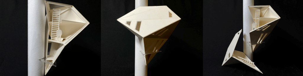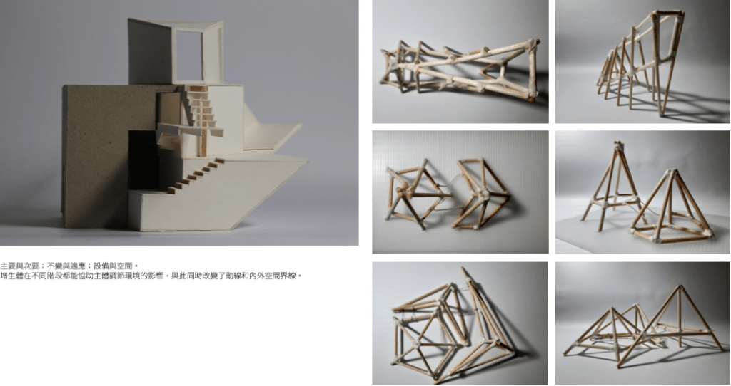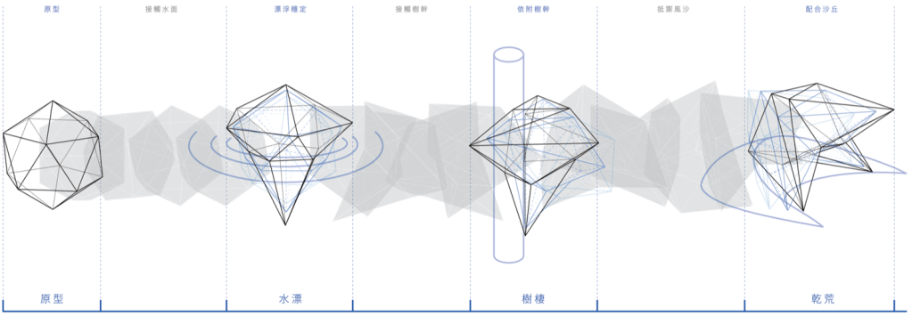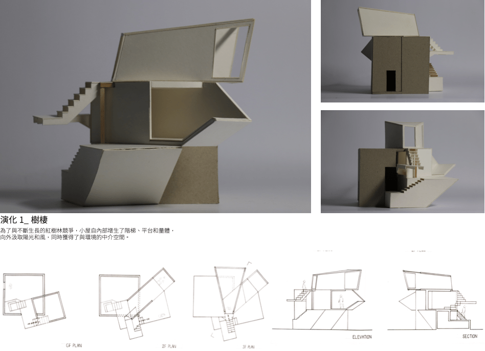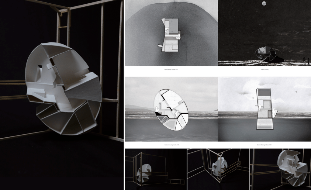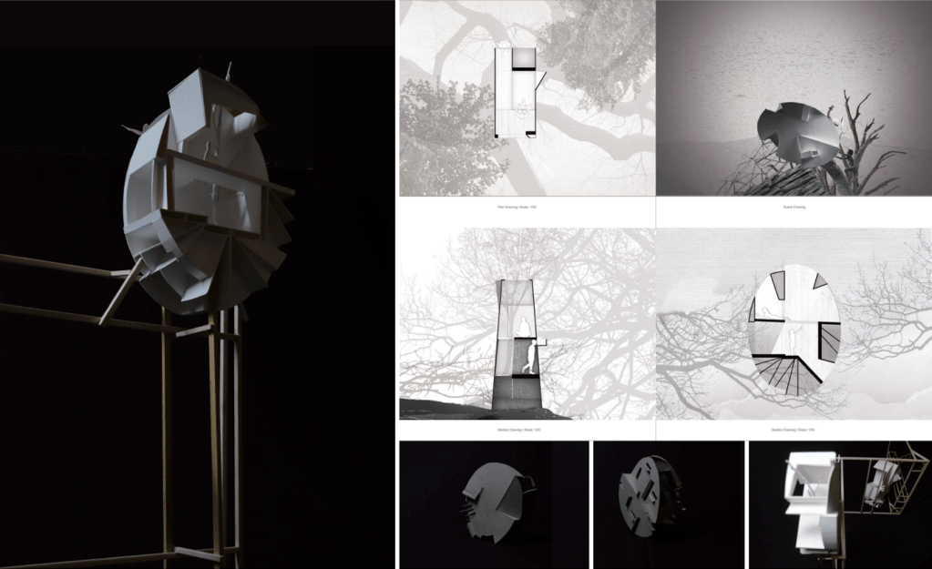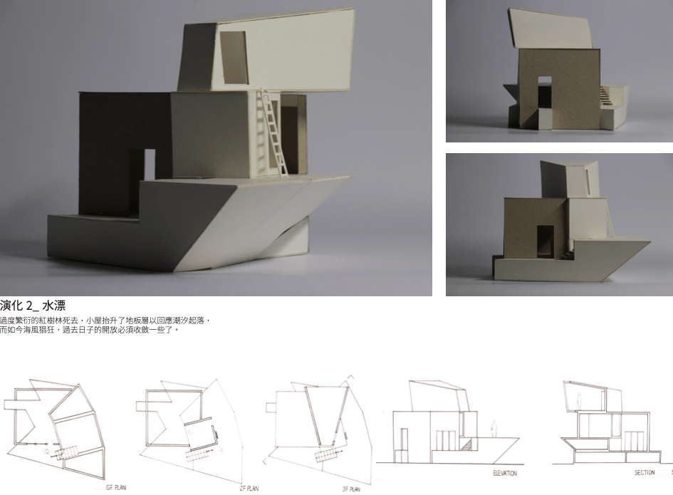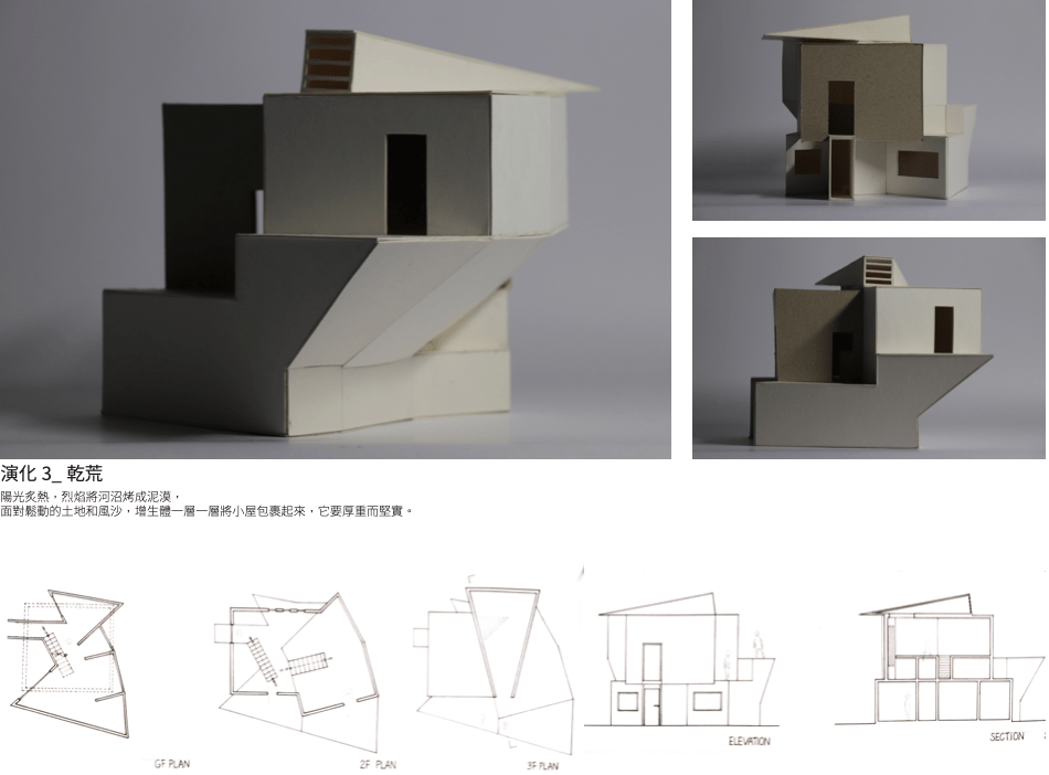 一群小屋,數世紀前來到草原,跡象顯示它們落腳前曾棲於大樹、歷經水漂與乾荒,每段為期不明,但估計都超過百年。 小屋當過好幾代人類或其他動物的居處;第一個發現它的人可能如獲至寶,繼承它的人在洪水來時不得不做點修繕或只好放棄它。漫長的生命裡被加上一些東西、掉了一些東西,也許也長了什麼、隱藏了什麼。 這個計畫邀請你提出想像,並佐證相對合理的建築知識來重建這批小屋的演化輪廓:推想出某種具通用效果或變異潛力(或變化便利性)的形式與構造,以滿足多狀態的生命史推測。