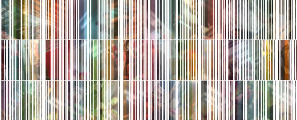 以條碼作為視覺主題,來記錄市場街的帶狀商業空間。條碼上寬窄相間的線條,內藏著照片拍攝時間與攤位編號等數字資訊編碼,顏色與圖像則是攤位的快照。作品將市場街的時間、空間與視覺濃縮於一套呈現方法之中。